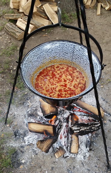 The best Goulash Soup is made on open fire in a kettle. The bigger quantity usually means better quality. The Hungarian Kettle Goulash is usually made for 12-16 people. Multiply the ingredients accordingly!
