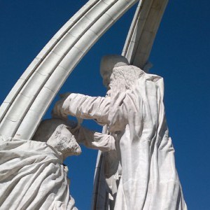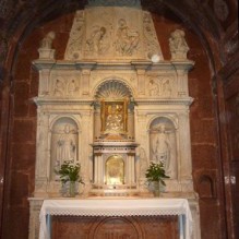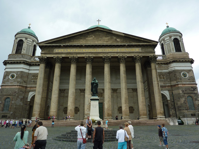 The town is dominated by the baroque Cathedral on the hill, surrounded by several statues. The Primatial Basilica of the Blessed Virgin Mary Assumed Into Heaven and St Adalbert is an ecclesiastic basilica the mother church of the Archdiocese of Esztergom-Budapest, and the seat of the Catholic Church in Hungary. The altarpiece, depicting the Assumption of the Blessed Virgin Mary, is the largest painting in the world painted on a single piece of canvas.