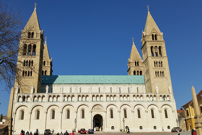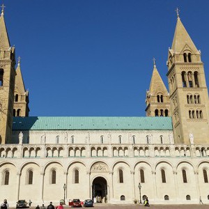 With construction beginning in the late 11th century and finalized in the 12th, Pécs Cathedral has remained an important feature of this city for hundreds of years. With its Romanesque design, this Cathedral is a symbol of Hungarian history. In the 16th century it was converted into a Turkish mosque before finally being claimed once again as a place of Christian worship, representing the years of cultural change within Hungary. The Cathedral, also known as the St Peter and St Paul Basilica is dominated by four 60 meter tall towers, making it one of Pécs’ most impressive buildings. The inside is equally remarkable. Divided by a splendid arch, the cathedral plays host to the famous frescoes of Bertalan Székely alongside a manual organ. The choir can boast of a four-manual organ with over 6000 pipes, a masterpiece from the renowned Angster Organ Factory in Pécs. The Chapels of the Sacred Heart of Jesus and Corpus Christi are decorated by Karoly Lotz seccos. Additionally, we can observe the world famous Bertalan Székely seccos in both the Chapel of Mary and in the chapel of Saint Mór. The mortal remains of Janus Pannonius, a well-known Humanist poet and a former Bishop of Pécs, were rediscovered and then reburied during archaeological excavations in the enormous 12th century, cross-vaulted, five-nave crypt. A sculpture was erected in his memory at the same spot. There is a stunning view of the city from the south-eastern tower of the time-honoured cathedral, which has preserved the spirit of its thousand-year-old past so well.