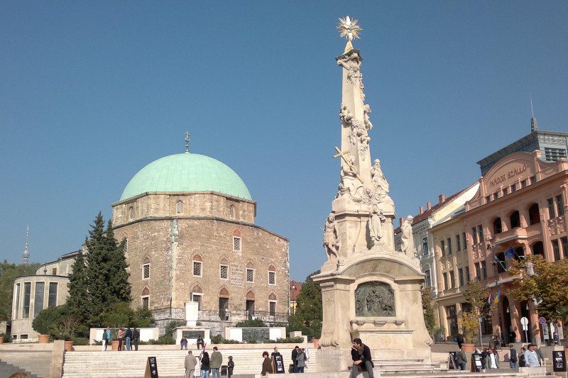 Built between 1543 and 1546, this impressive building was the creation of Pasha Gazi Qasim after Turkish occupation of Hungary in the 16th century. It has been used for Christian worship since 1868 leading to interior renovations in order to suit. However, the exterior looks exactly the same as it did when it was first constructed. With its ogee windows and a finely decorated mihrab (praying niche), which faces Mecca, the building still contains many original features and elements of Ottoman design. Visitors can even find poems from the Koran written on the walls. This is a truly unique building which incorporates both Christian and Islamic design, as presented through the combined symbols of the crescent moon and the cross on the top of the dome. Now it serves as the Parish Church of Gyertyaszentelõ Boldogasszony in the city centre of Pécs